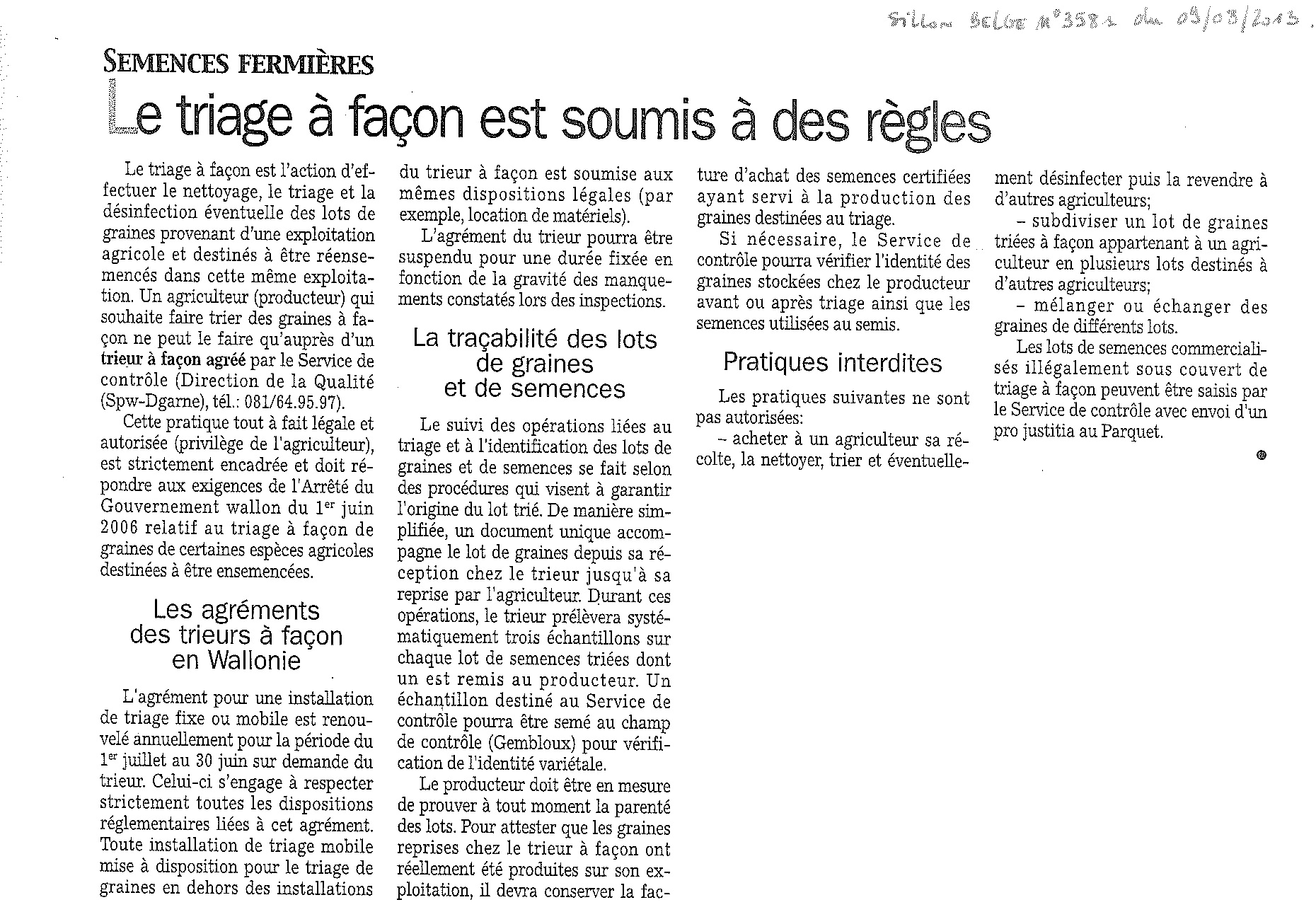 - Nouvelles règles pour le triage à façon - Le Sillon belge, 08/09/2006